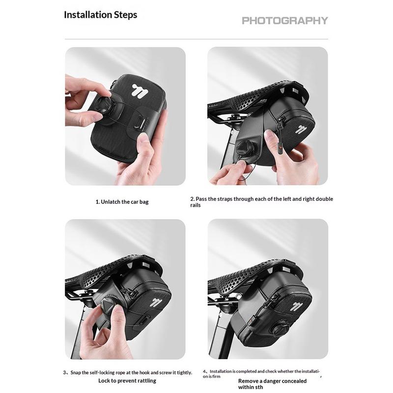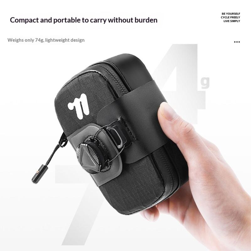 West Biking YP0707431 0.2L sykkelsadelveske er en kompakt og ultralett oppbevaringsløsning designet for syklister som verdsetter stabilitet og minimal vekt. Med en selvlåsende vri-mekanisme og hurtigutløsersystem festes denne bakvesken sikkert under sadelen uten å vingle eller lage støy. Den er laget av slitesterkt UHMWPE ripstop-stoff og tilbyr utmerket ripebestandighet og langvarig ytelse for både landeveissykling og terrengsykling.