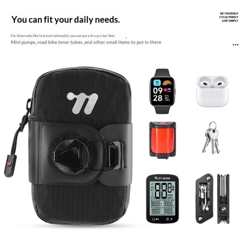 West Biking YP0707431 0.2L sykkelsadelveske - hurtigutløsende, selvlåsende oppbevaringslomme bak for landeveissykler og terrengsykler