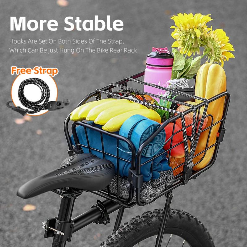 WEST BIKING YP0712036 bakre kurv og bagasjebrett er en robust og lett løsning for transport av utstyr på terrengsykler og hverdagspendlere. Den er laget av aluminiumslegering med en forsterket trekantet struktur, og fordeler vekten jevnt for stabil og trygg sykling - selv når den er fullastet. Med en sjenerøs kapasitet på 20 liter og et sikkert gummistroppsystem er den ideell for shopping, pendling og korte turer der pålitelighet er viktig.