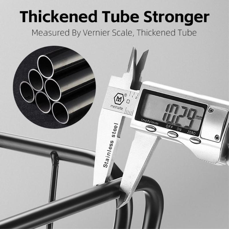 Trekantet avstivning bidrar til å fordele kreftene over flere punkter, noe som reduserer bøyning under belastning. Stativer i aluminiumslegering balanserer styrke og vekt, noe som gjør dem populære for pendling og touring. Reflekselementer gjør at du er godt synlig bakfra, noe som øker sikkerheten når du sykler i dårlig lys.