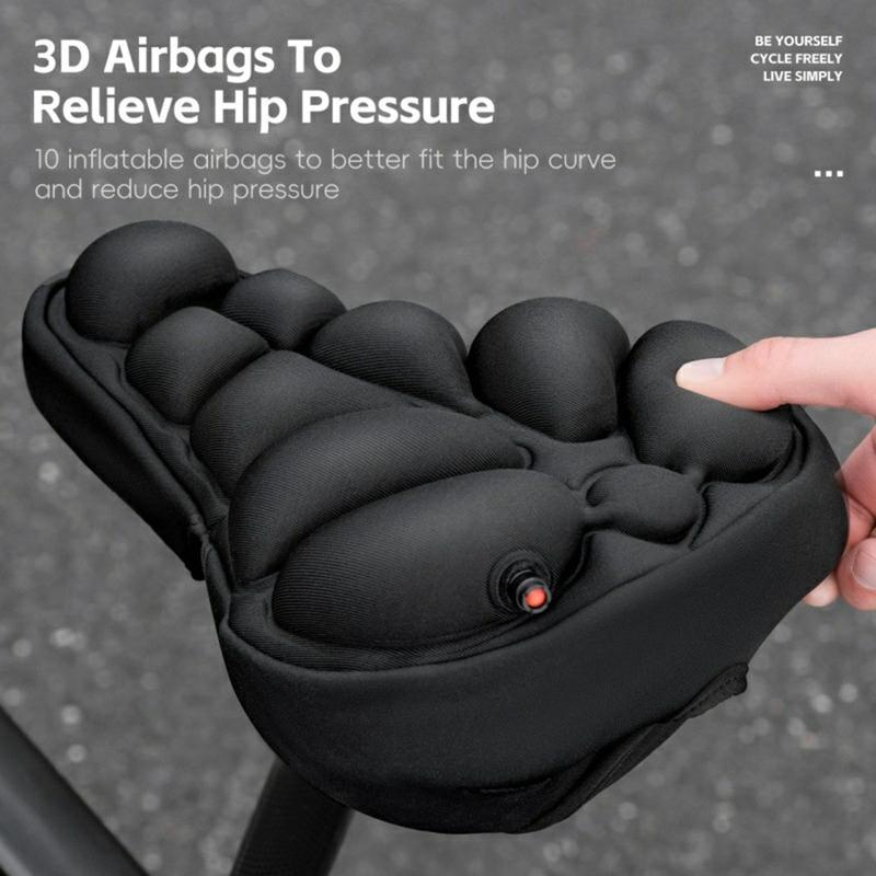 West Biking YP0801259 3D oppblåsbart luftpute sykkelseteovertrekk - justerbar trykkavlastende støtsikker sadelunderlag med ventilasjon (27 cm x 16,5 cm)