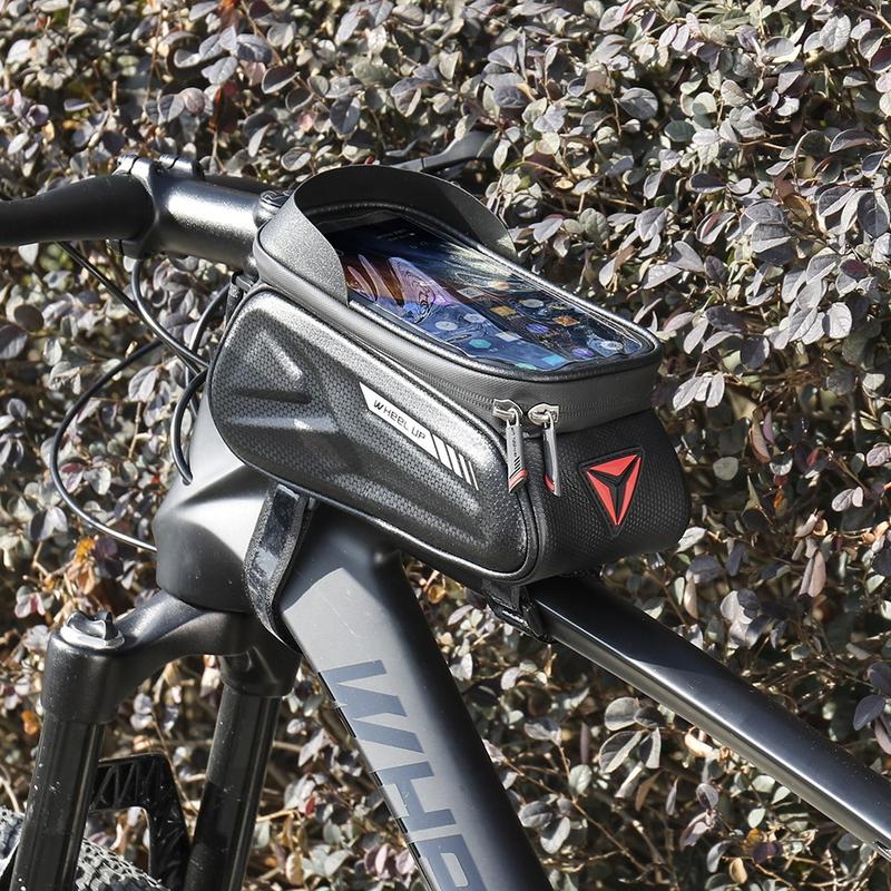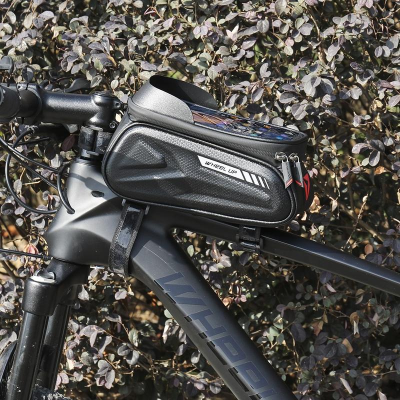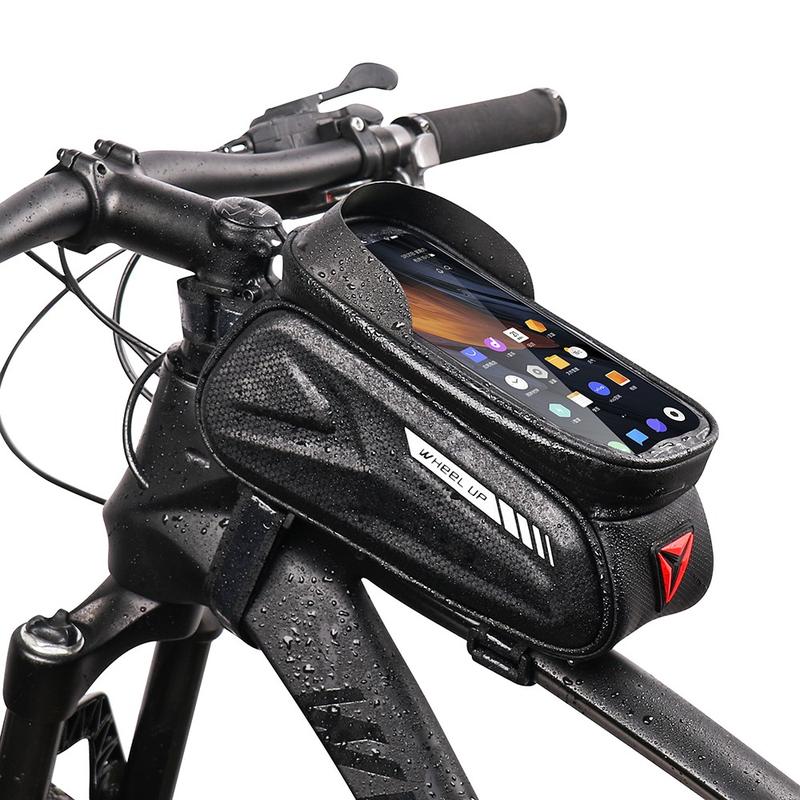 WHEEL UP Sykkelveske Vanntett sykkelveske Vanntett sykkelveske med stor kapasitet MTB landeveissykkel 7-tommers telefonveske med berøringsskjerm - hvit refleks