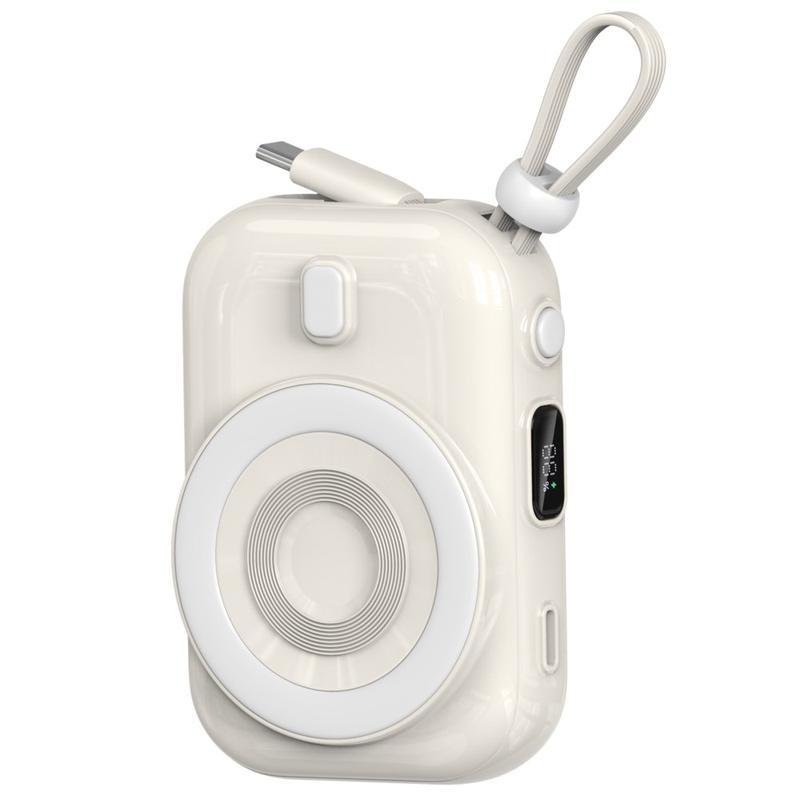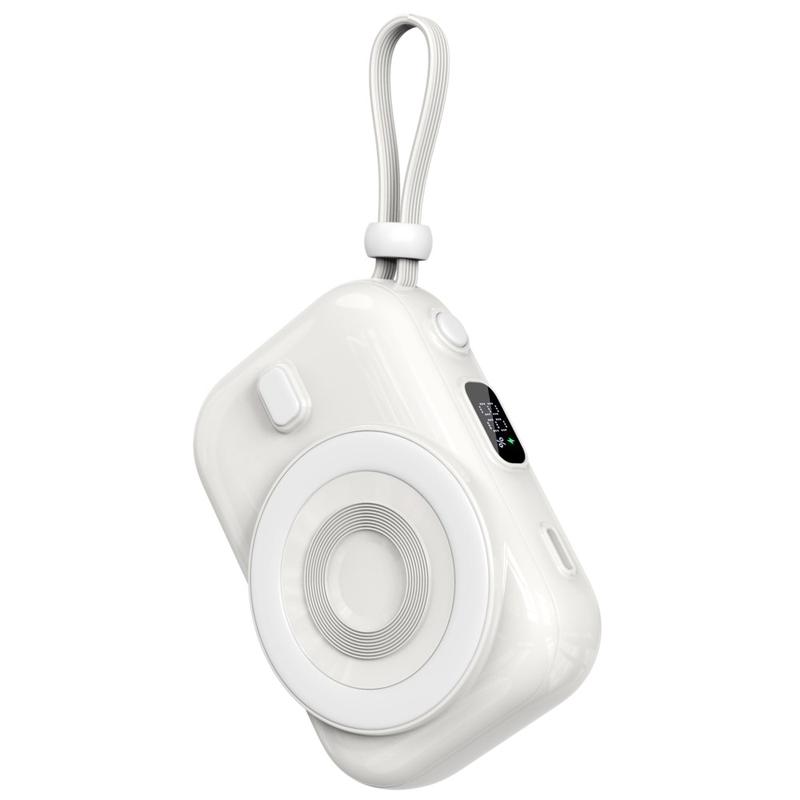 WIWU Wi-P041 Small Snail Power Bank er et allsidig og stilig tilbehør som er designet for å holde enhetene dine ladet når du er på farten. Med en kapasitet på 9600 mAh sørger den for at du har rikelig med strøm til smarttelefonen og andre dingser. Den magnetiske, trådløse ladefunksjonen sørger for praktisk og rask lading uten behov for kabler. Den kompakte og bærbare designen, sammen med den medfølgende Type-C-kabelen, gjør den til en perfekt følgesvenn for reiser og daglig bruk.