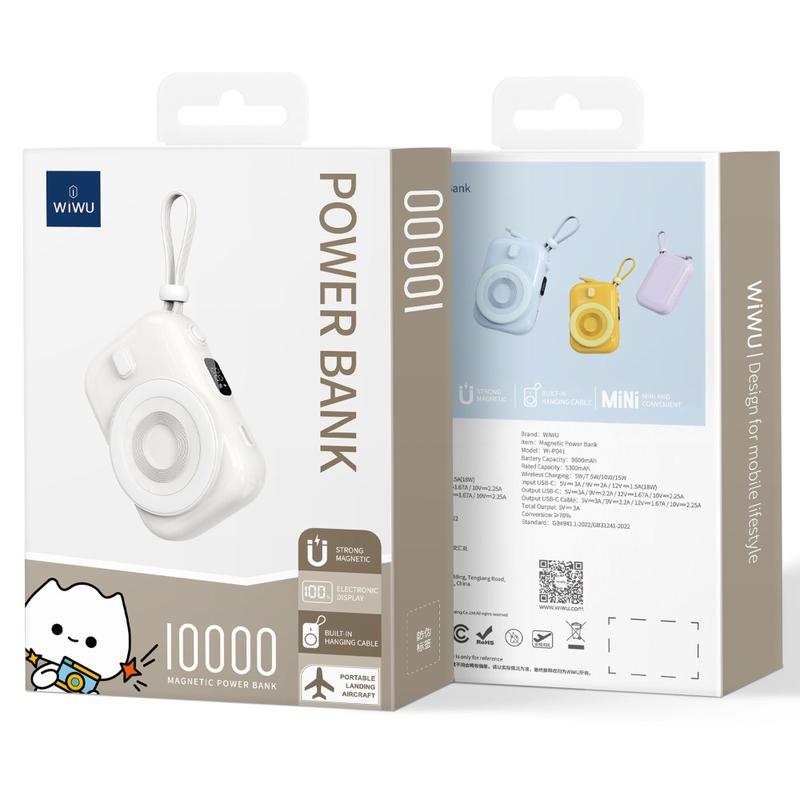 WIWU Wi-P041 Small Snail Power Bank er en uunnværlig gadget for alle som trenger pålitelig og praktisk lading når de er på farten. Den høye kapasiteten, den magnetiske trådløse ladingen og den kompakte designen gjør den til et allsidig og praktisk valg for et bredt spekter av bruksområder.
