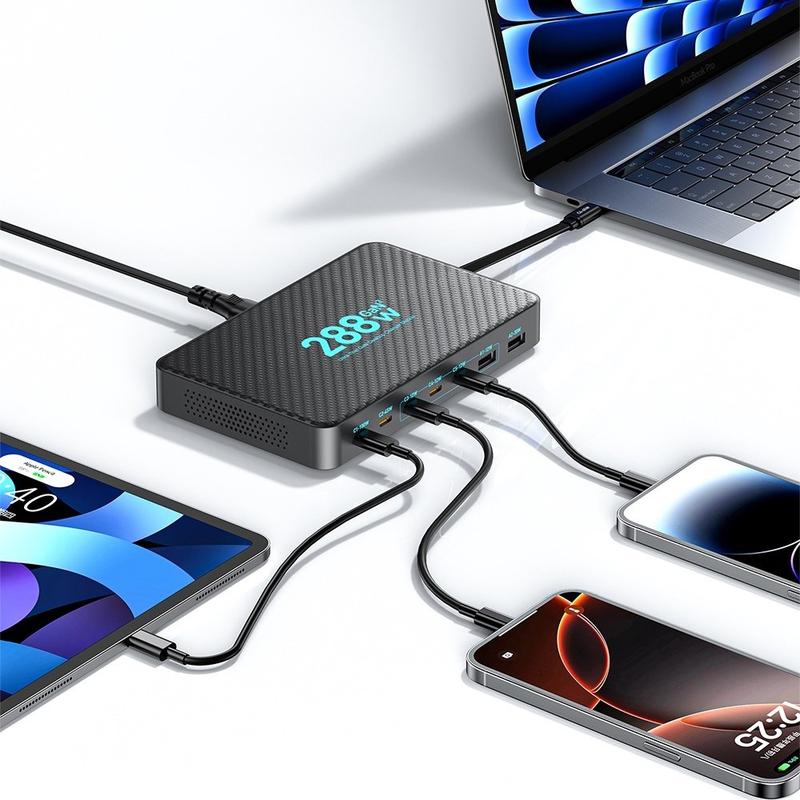 GaN-ladere bruker galliumnitridkomponenter som kan bytte strøm mer effektivt enn tradisjonelle silisiumdesign, noe som bidrar til å levere høyere wattstyrke i mindre hus. GaN-stasjoner med flere porter er populære for å redusere kabelrot fordi de sentraliserer ladingen og minimerer antall veggplugger som trengs. Uttrekkbare kabler bidrar også til å redusere slitasje på kablene og holde arbeidsplassen mer organisert.