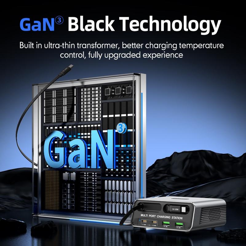 Den er drevet av GaN-teknologi og er designet for effektiv lading med bedre temperaturkontroll i en kompakt form. USB-C-porter støtter hurtiglading opptil 65 W for kompatible telefoner, nettbrett og mange bærbare datamaskiner, mens USB-A-porter gir opptil 30 W for tilbehør og hverdagsapparater. Dynamisk strømfordeling gjør at flere enheter kan lades samtidig, noe som gjør den ideell for familier, delte skrivebord eller alle som bruker flere USB-drevne enheter daglig. Innebygde sikkerhetsbeskyttelser bidrar til å holde ladingen stabil og pålitelig.