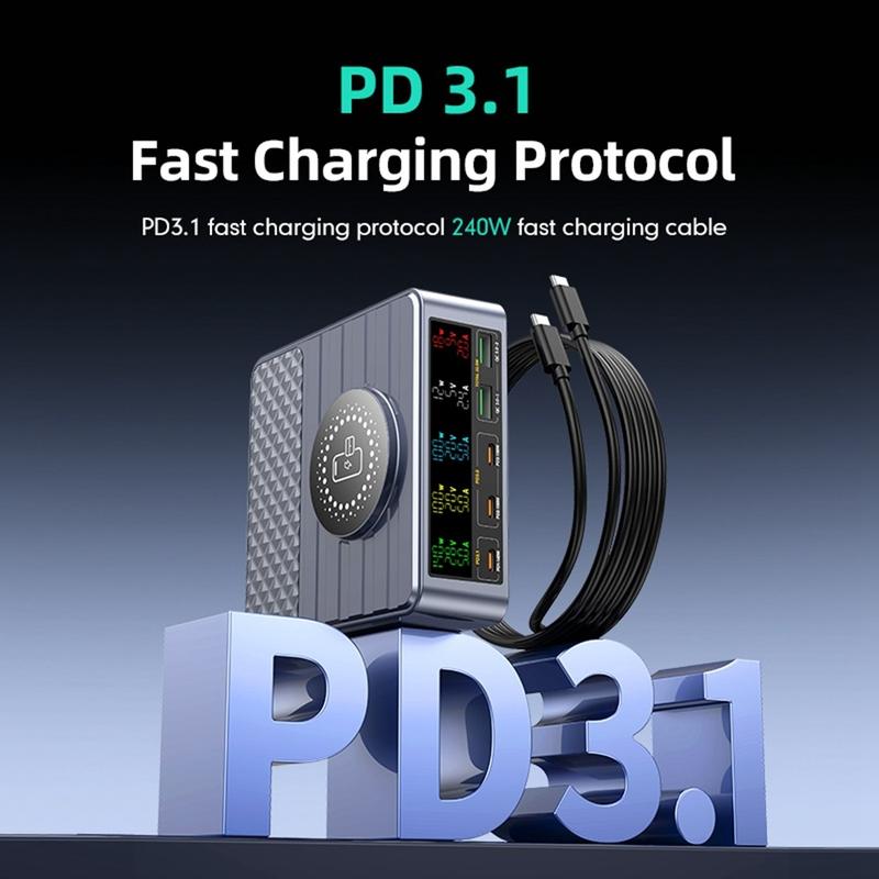 - PD3.1 kan levere opptil 140 W, noe som overgår tradisjonelle PD-egenskaper og muliggjør hurtiglading på laptop-nivå