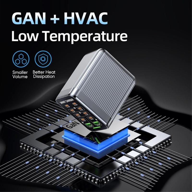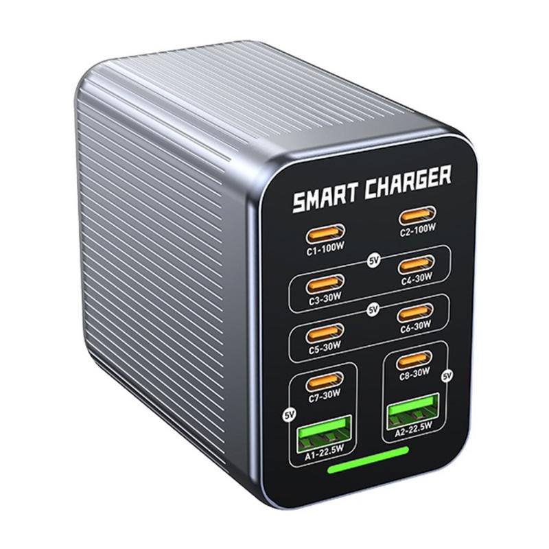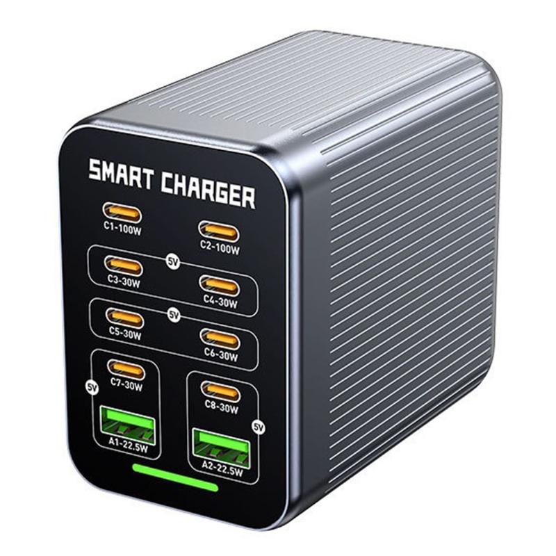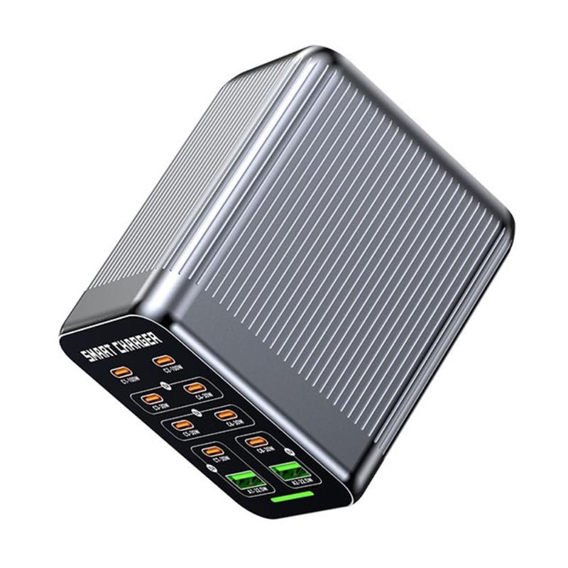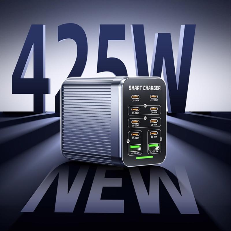 WLX-G1 425W GaN stasjonær ladestasjon med 10 porter - hurtiglader for flere enheter med PD/QC/PPS, smart viftekjøling, 100-240 V