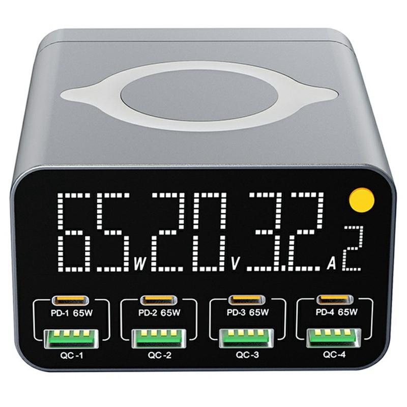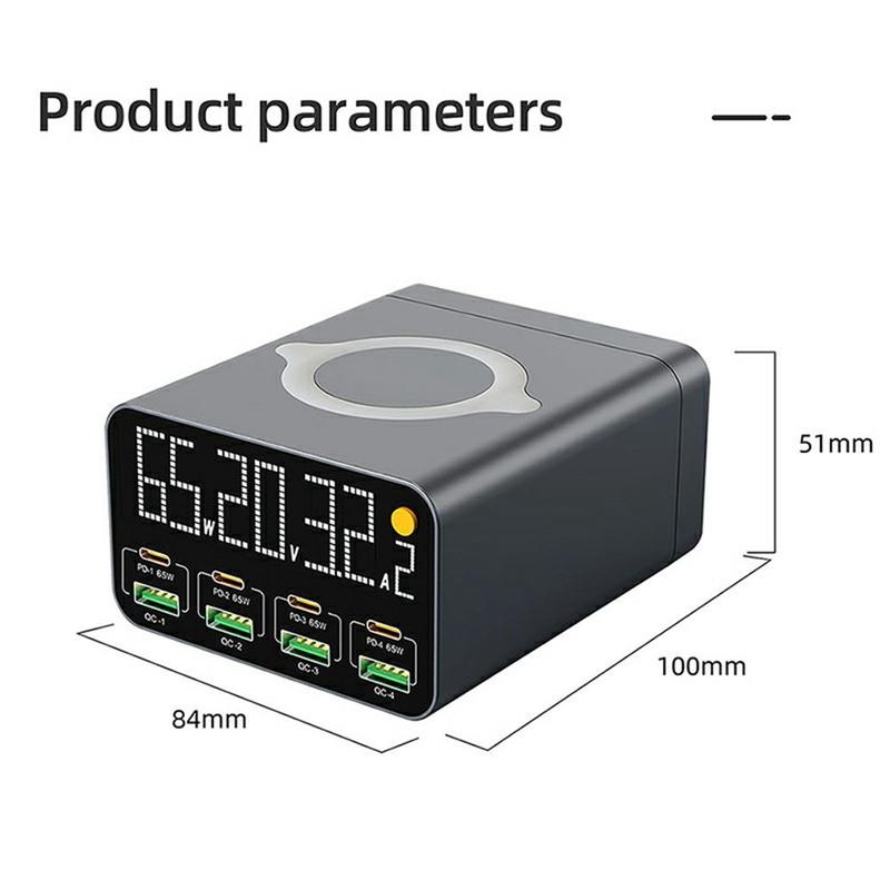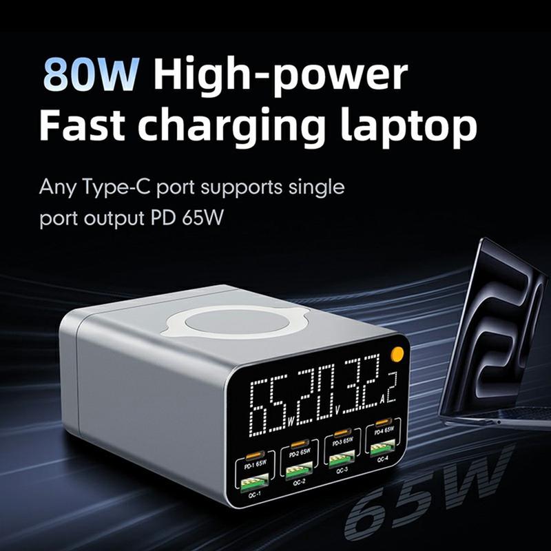WLX-M3 80W 9-i-1 GaN-stasjon for stasjonær lading - USB-C/USB-hurtiglader med flere porter og trådløs lading (EU-plugg)