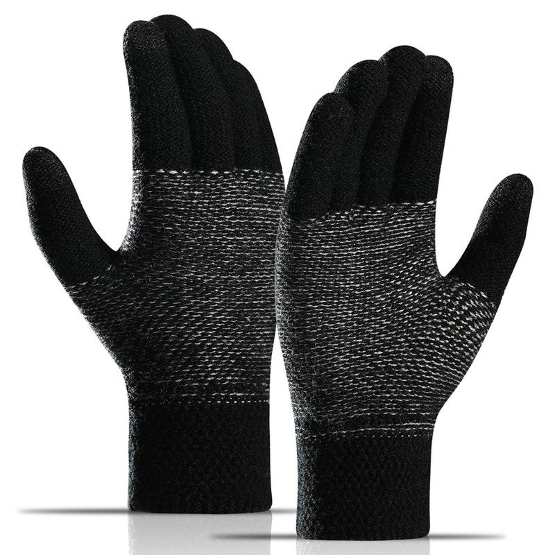 WM 1 par unisex strikkede varme hansker med berøringsskjerm Stretchy votter med strikket fôr - svart