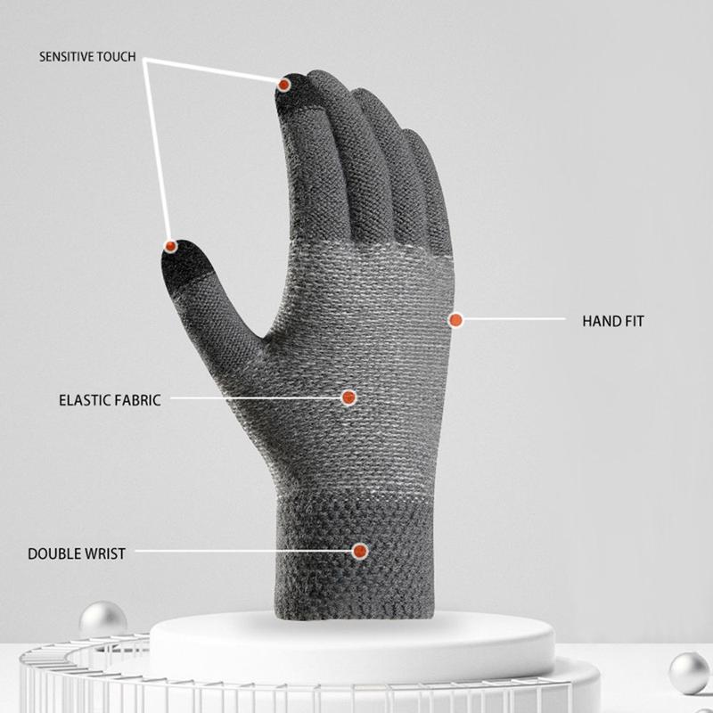 WM 1 par unisex strikkede varme hansker med berøringsskjerm Stretchy votter med strikket fôr