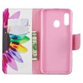 - Et moteriktig lommebok-deksel til Samsung Galaxy A20e med et tiltalende mønster