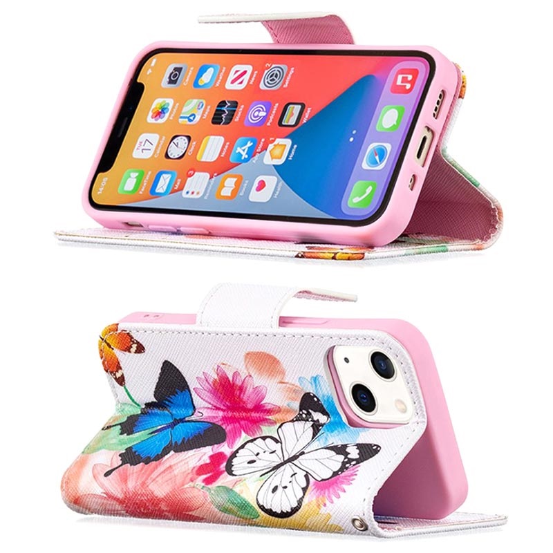 - Et moteriktig lommebok-deksel til iPhone 13 Mini med et tiltalende mønster