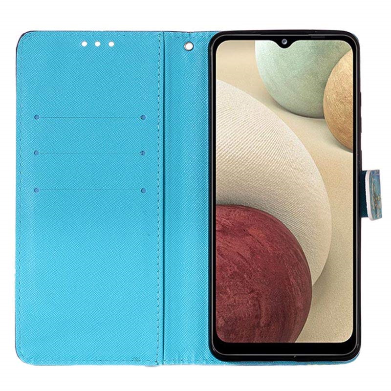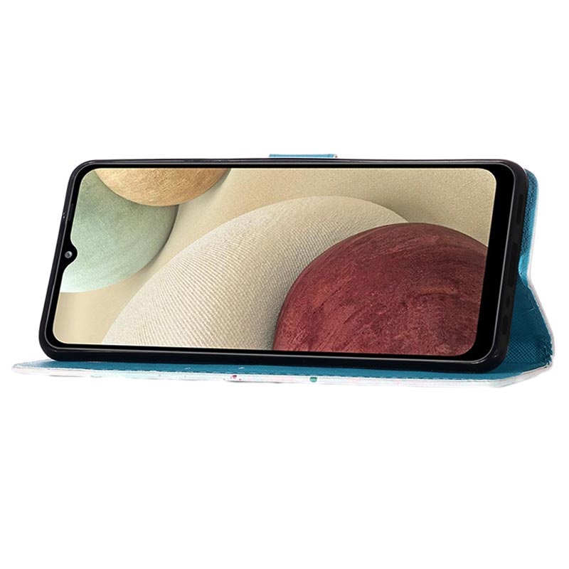 - Et moteriktig lommebok-deksel til Samsung Galaxy A12 med et tiltalende mønster