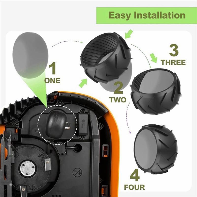 - Gummihjulbeskyttere forhindrer ikke bare slitasje, men bidrar også til å beskytte ømfintlige plenoverflater.