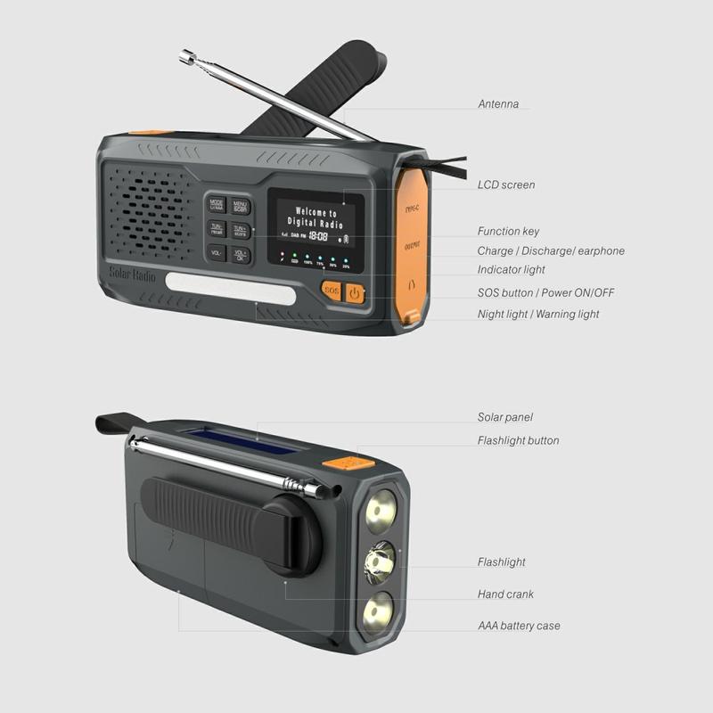 WR-6B Nødradio DAB med håndsveiv og LED-lommelykt - 40 DAB-stasjoner, SOS-lommelykt, LCD-skjerm