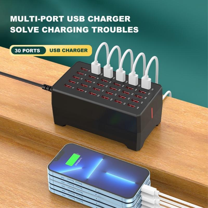 WT-268 30-porters USB-ladestasjon - 150W høyeffekts ladestasjon for skrivebord