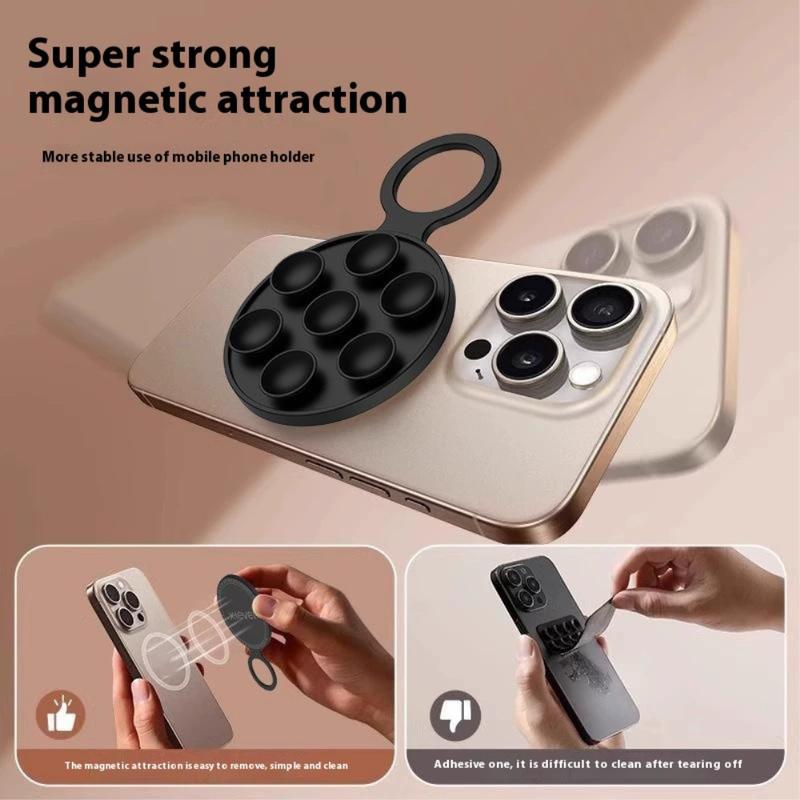Tolv N52 neodymmagneter samarbeider med en tett sugekopp i silikon for å feste telefonen til glass, fliser, metall eller blanke dashbord på sekunder. Det lukkede magnetfeltet holder fast enheter på opptil 1 kg uten å forstyrre GPS- eller 5G-mottak, og sugekoppen griper tak selv på humpete veier.