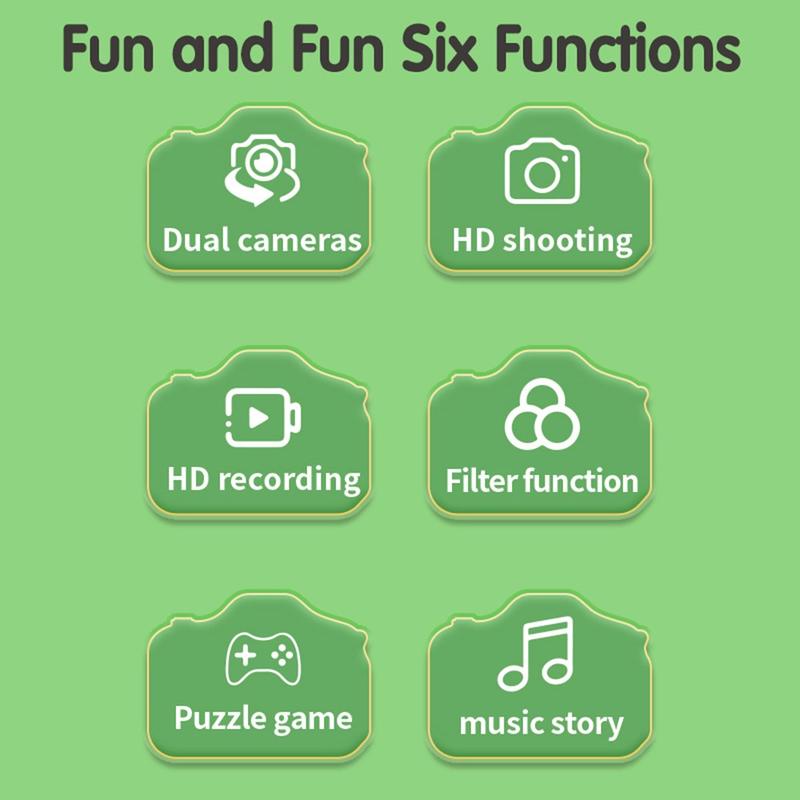 - Multifunksjonalitet: I tillegg til å ta bilder kan barna spille inn videoer, høre på musikk og ha glede av innebygde spill, noe som sikrer timevis med underholdning.