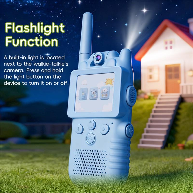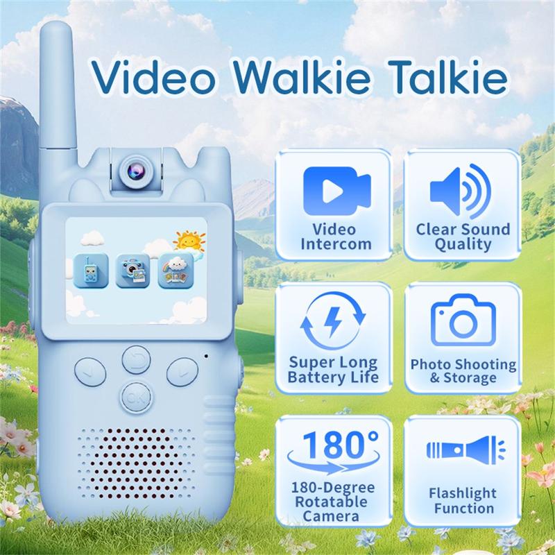 Det 180° roterende kameraet gjør det enklere for barna å bytte vinkel og fange forskjellige utsikter mens de leker. Enhetene trenger verken Wi-Fi, mobildata eller SIM-kort, og støtter direkte kommunikasjon i sanntid for enkel og praktisk bruk både innendørs og utendørs. Den innebygde lommelykten gir ekstra moro og praktisk nytte ved lek om kvelden eller små eventyr, mens fotolagring lar barna lagre og se tilbake på sine favorittøyeblikk.
