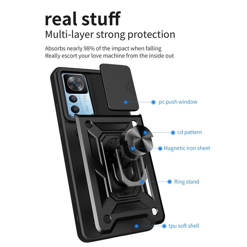 - Roterende ring hybridetui med kameraavskjerming for Xiaomi 12T, 12T Pro, Redmi K50 Ultra