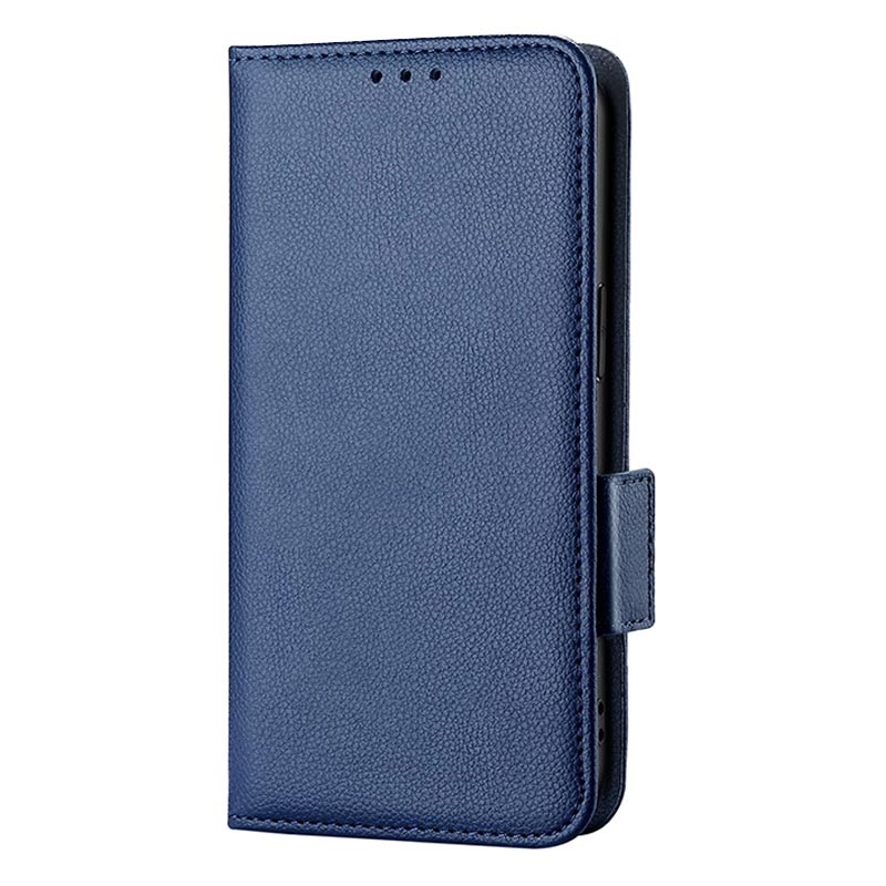 - Lommebok-dekselets bakside kan foldes til et praktisk stativ
