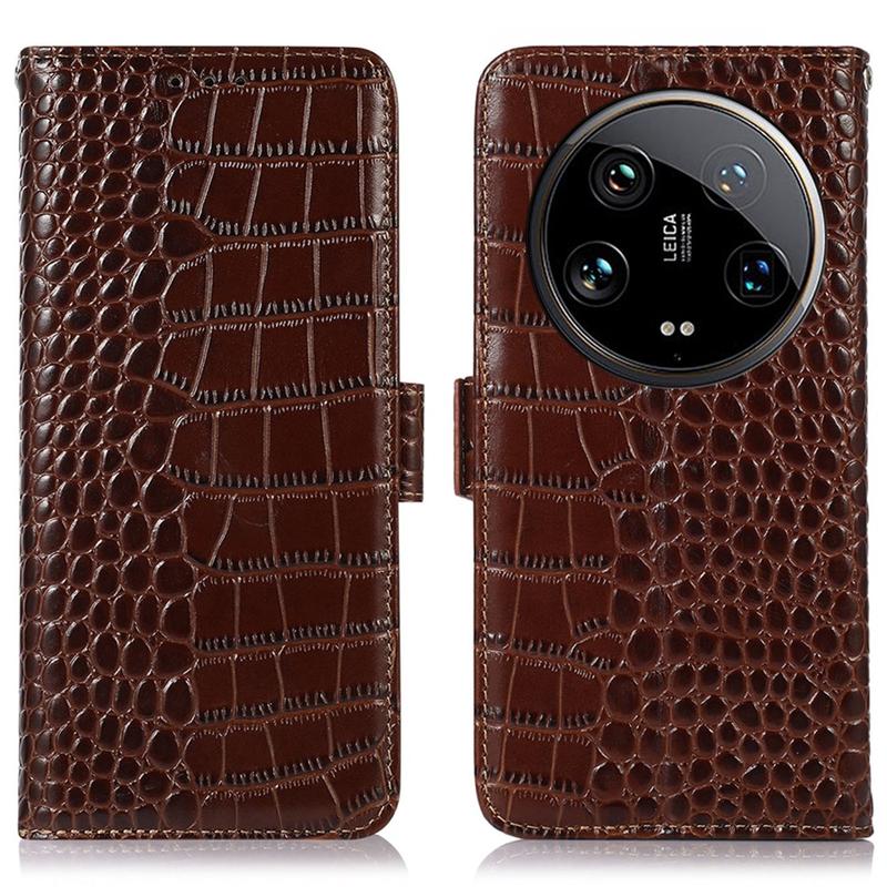 Crocodile Series Lommebok-deksel i Lær med RFID til Xiaomi 14 Ultra