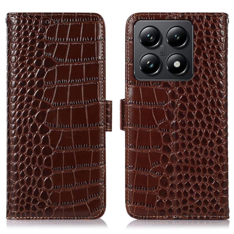 Crocodile Series Lommebok-deksel i Lær med RFID til Xiaomi 14T