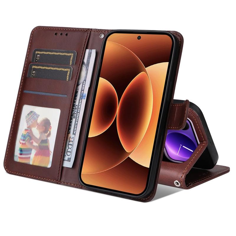 Gi din nye Xiaomi 17 Pro Max et raffinert vintageutseende samtidig som den erstatter hverdagslommeboken din. Eksteriøret i polyuretan med Crazy Horse-tekstur kombineres med et støtdempende TPU-skall for å beskytte mot fall og riper, mens smarte lommer holder orden på kort og kontanter.