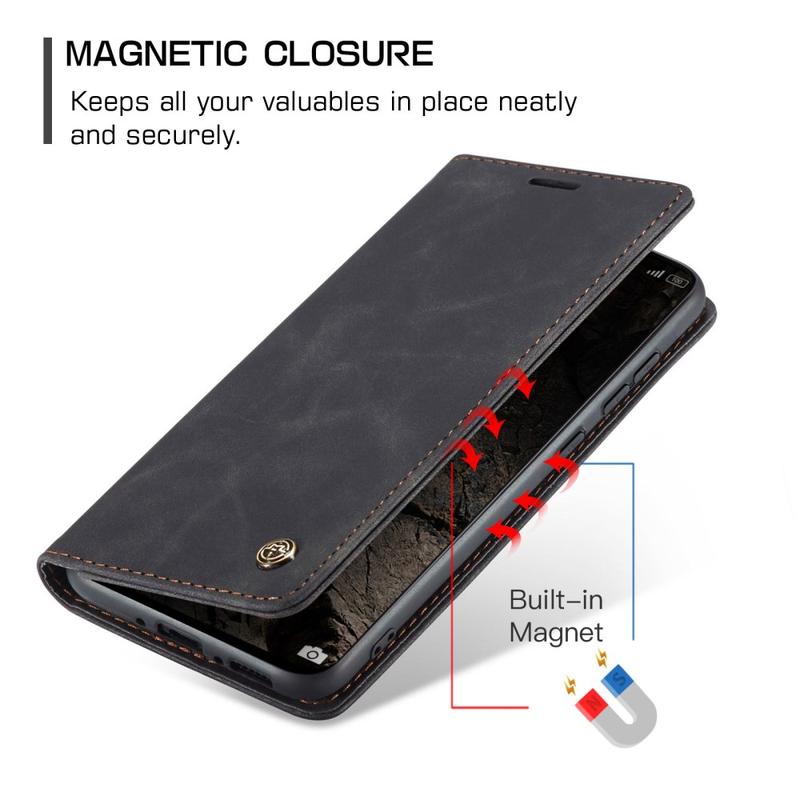 - Innebygde magneter holder Caseme 013-serien lommebok-deksel lukket