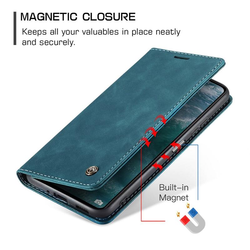 - Innebygde magneter holder Caseme 013-serien lommebok-deksel lukket