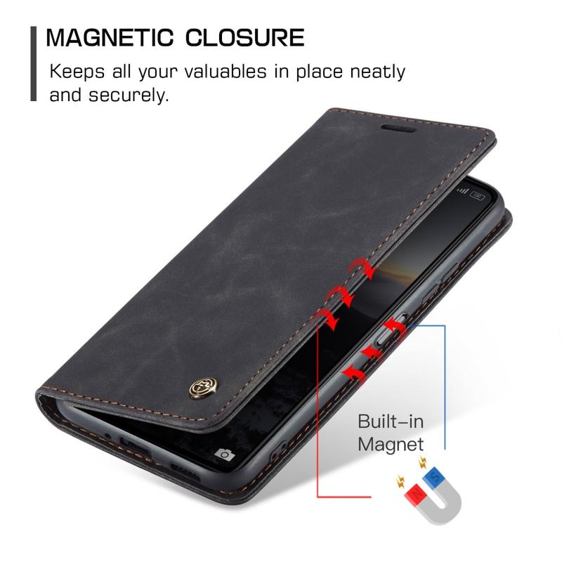 - Innebygde magneter holder Caseme 013-serien lommebok-deksel lukket