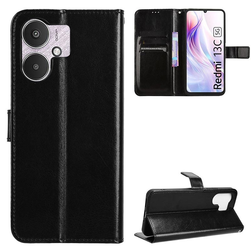 Xiaomi Redmi 13C 5G/Poco M6 Lommebok-deksel med Magnetisk Lukning - Svart
