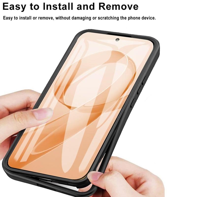 En kombinasjon av TPU-kanter og plastrygg beskytter mot fall, støt, riper og smuss, mens den fremre PET-skjermbeskytteren beskytter skjermen. Hevede kanter rundt kameraet beskytter kameralinsene i tillegg.