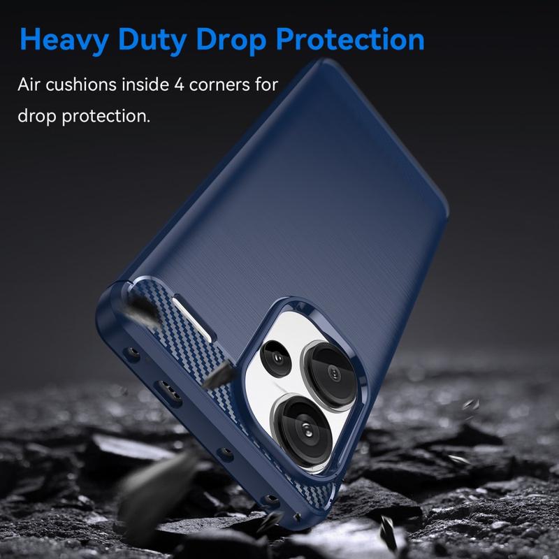 Det børstede TPU-dekselet beskytter din Xiaomi Redmi Note 13 Pro+ tilstrekkelig, samtidig som det gir den en flott stil, takket være karbonfibermønsteret på baksiden. Dekselet sikrer også overoppheting når du bruker Xiaomi Redmi Note 13 Pro+, med sitt varmespredningsdesign.