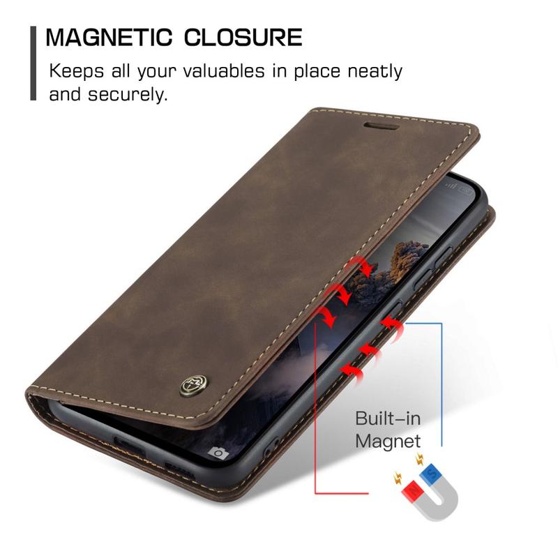 - Innebygde magneter holder Caseme 013-serien lommebok-deksel lukket
