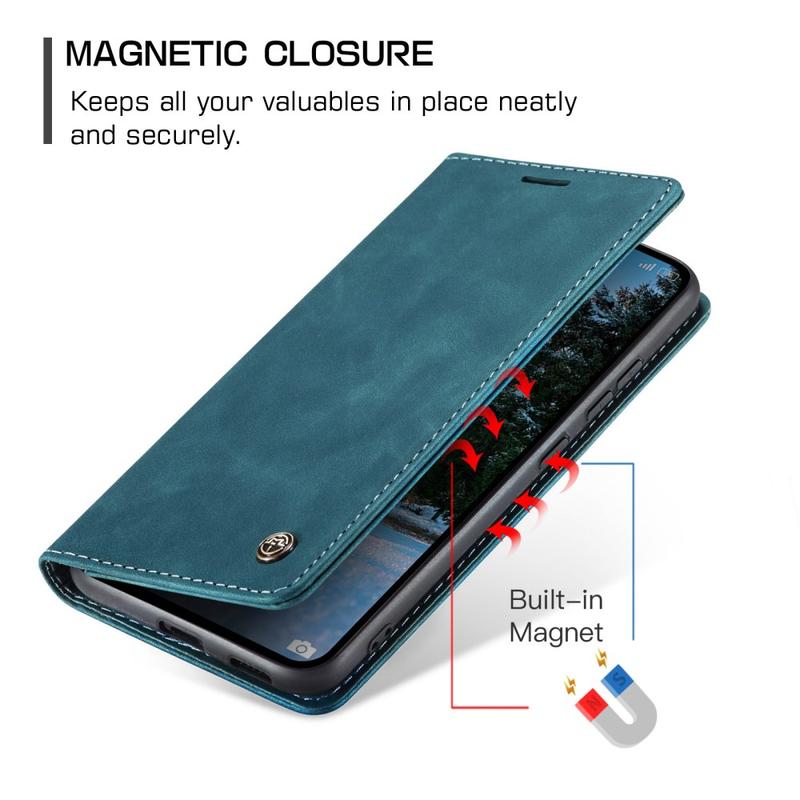 - Innebygde magneter holder Caseme 013-serien lommebok-deksel lukket