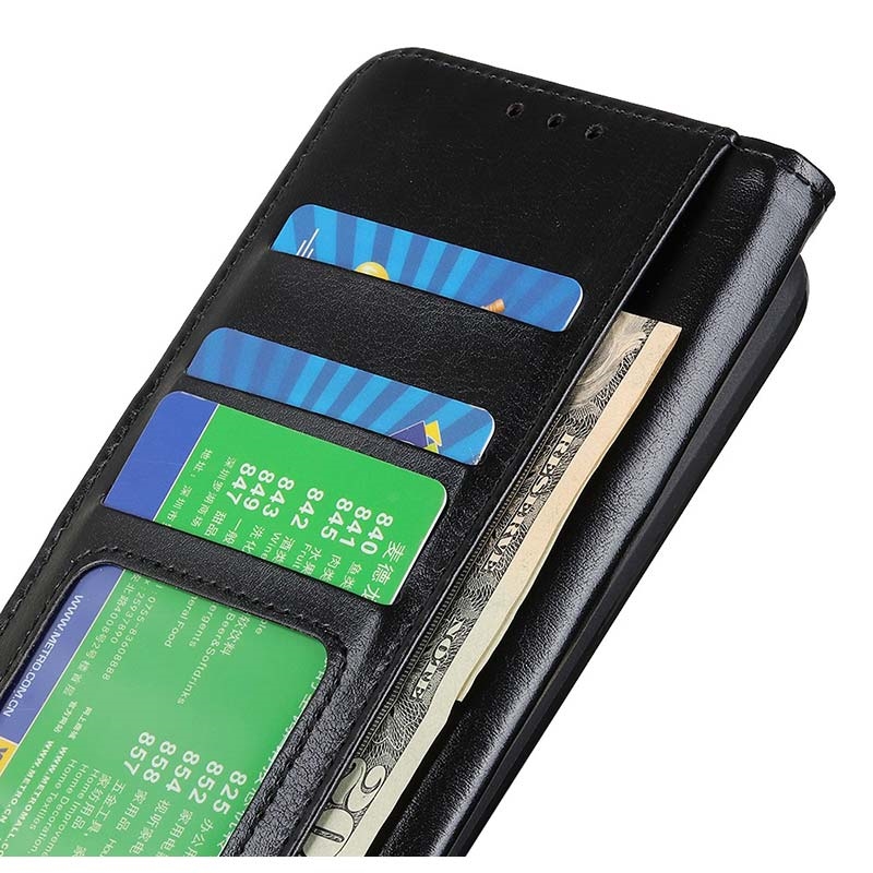 Dette lommeboketuiet er designet for bekvemmelighet, og har tre kortplasser og en sidelomme for å ta med kort og penger når du er på farten. Det sammenleggbare stativet gjør det enkelt å se på, noe som gjør det perfekt for både jobb og fritid. Den enkle åpningslåsen med to magnetiske lukkemekanismer på siden sørger for at eiendelene dine er godt festet.