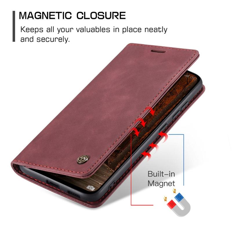 - Innebygde magneter holder Caseme 013-serien lommebok-deksel lukket