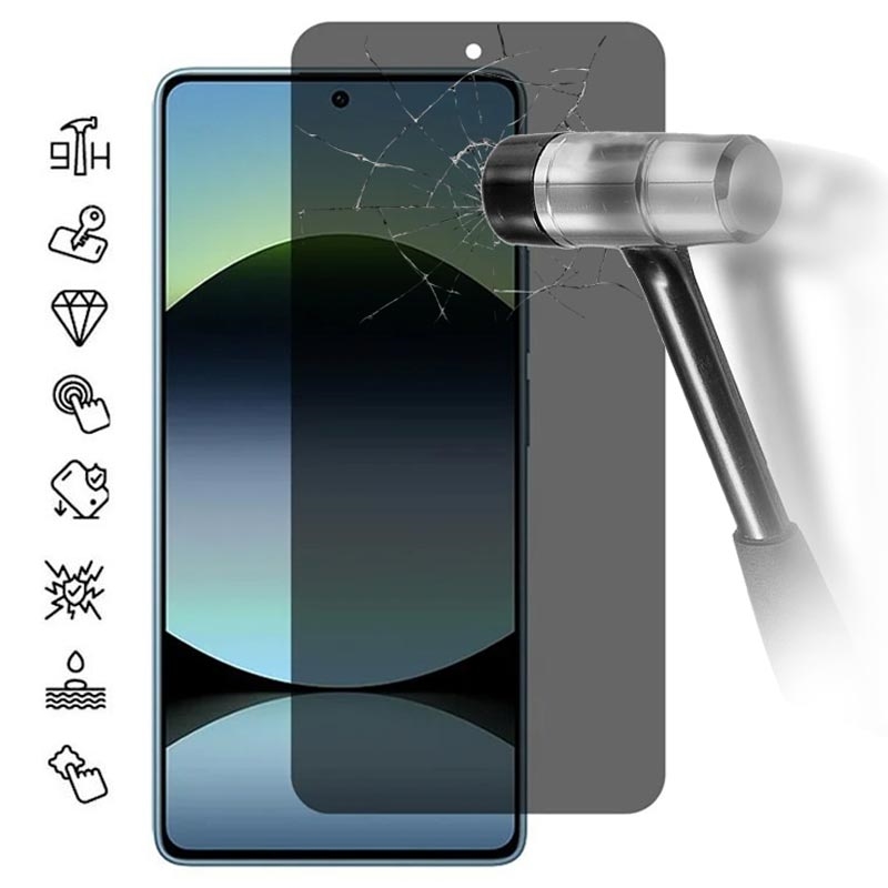 - Skjermbeskytter i herdet glass for Xiaomi Redmi Note 14S med personvernfilter