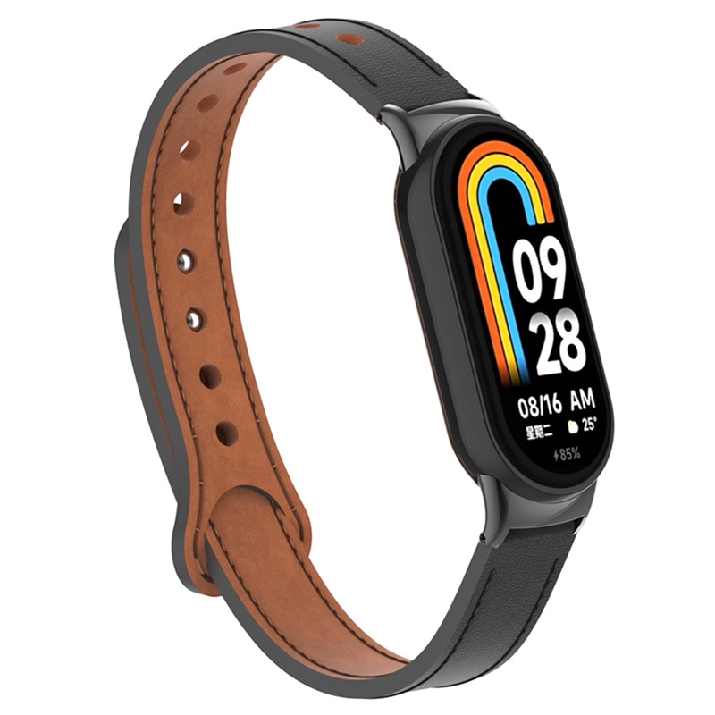 - Førsteklasses lærreim med kontakter for Xiaomi Smart Band 8