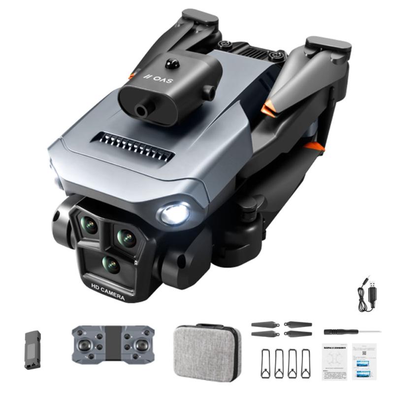 XKJ K6 MAX 3-kameradrone med 3 kameraer for å unngå hindringer HD-fotografering fra luften sammenleggbart quadcopter RC-fly med ett batteri - grå