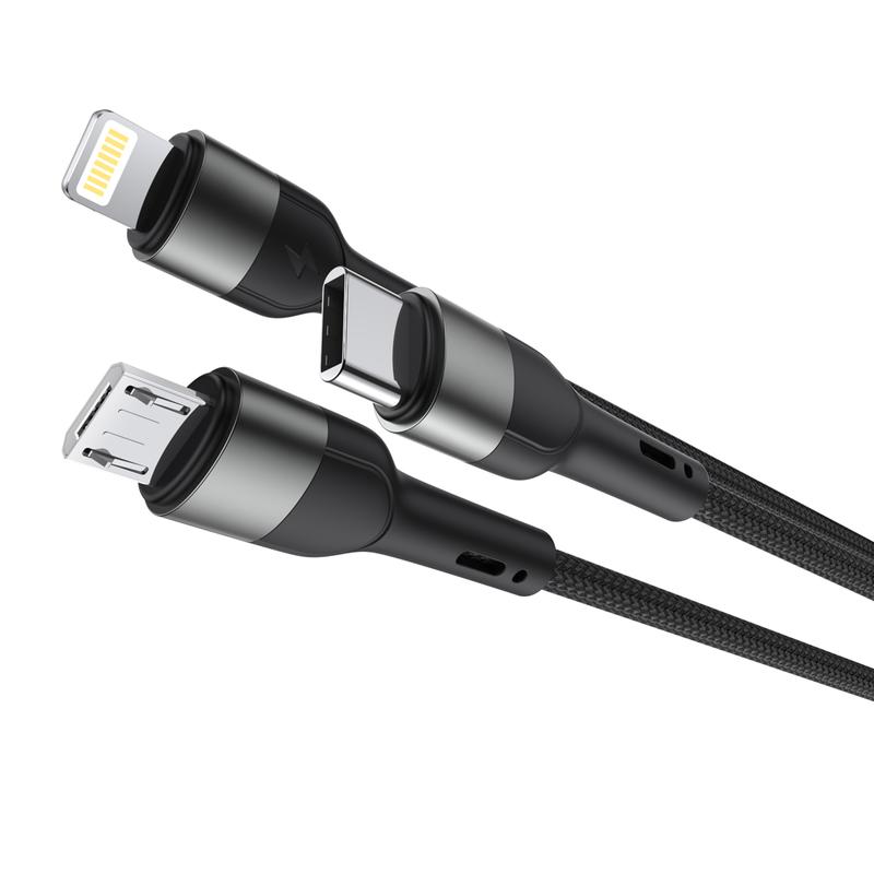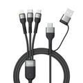 XO NB254 6-i-1 ladekabel - USB-C, Lightning, MicroUSB, USB-A - 1.2m, 60W