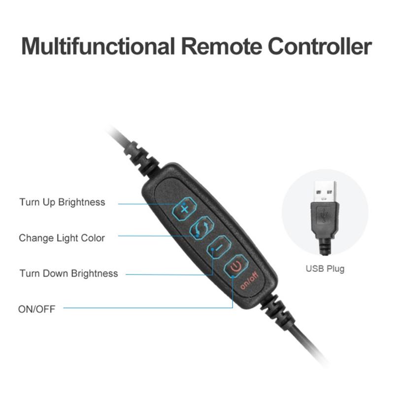 Forvandle ethvert skrivebord eller sminkebord til et mini-studio. Denne 10-tommers USB-ringlampen gir en myk, flimmerfri belysning med tre fargetemperaturer (3000 K varm, 4500 K nøytral, 6500 K kjølig) og trinnløs dimming for å matche dagslys, kveldsstemning eller RGB-spillrigger. Et 360° kulehode gjør at du kan vippe og dreie lampen for å oppnå perfekt belysning, mens det utfellbare metallstativet sørger for at den står stødig ved siden av bærbare datamaskiner, speil eller hobbybenker. Settet drives av en hvilken som helst 5 V USB-port og er sammenkoblet med en Bluetooth-lukker, slik at det er klart for liveundervisning, TikTok-klipp, Zoom-samtaler og produktopptak rett ut av esken.