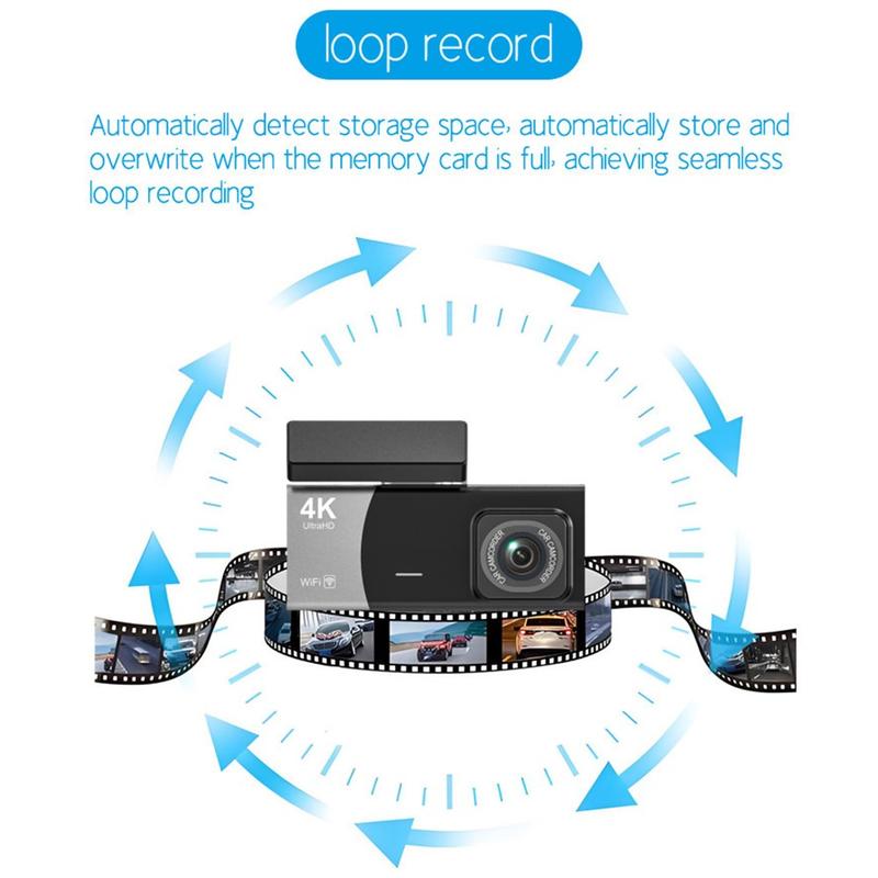- System med tre objektiver med 4K-opptak foran, 720P innvendig og 720P bak