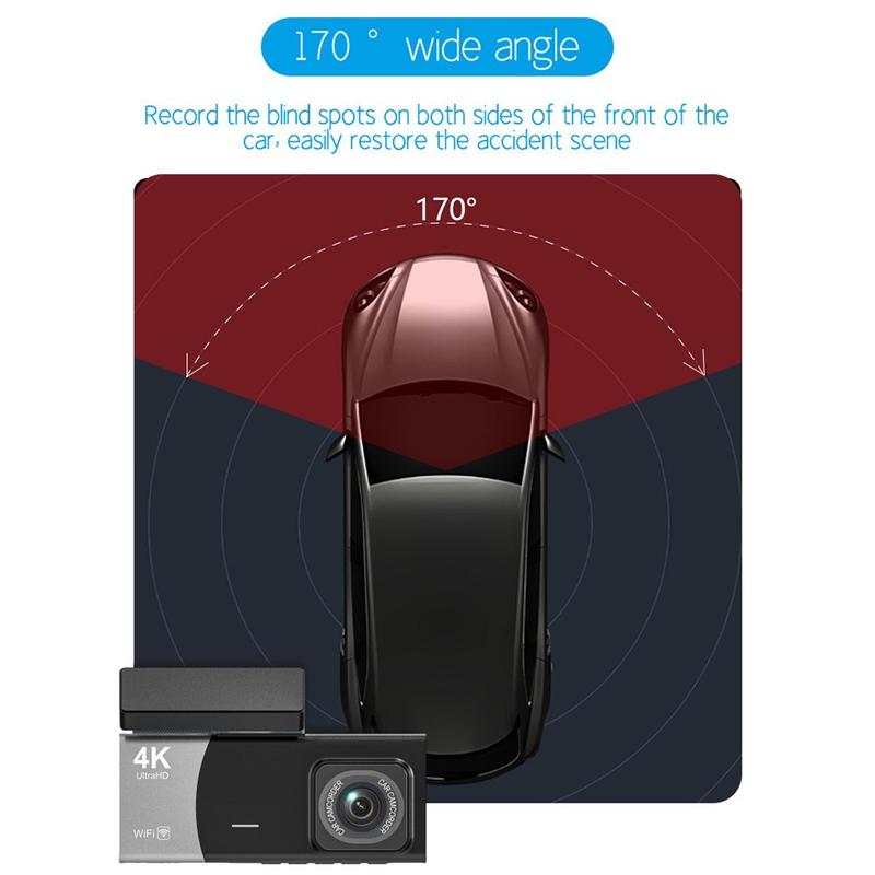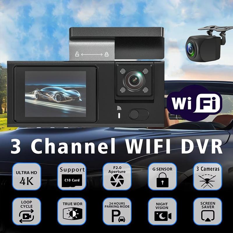 Y08 4K bilkamera med tre objektiver - DVR foran, innvendig og bak med WiFi, 2" IPS-skjerm og G-sensor