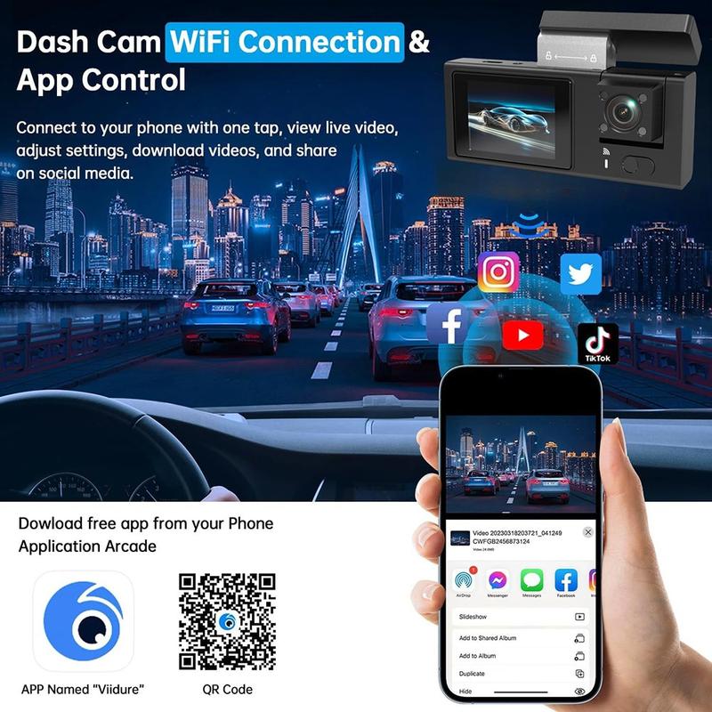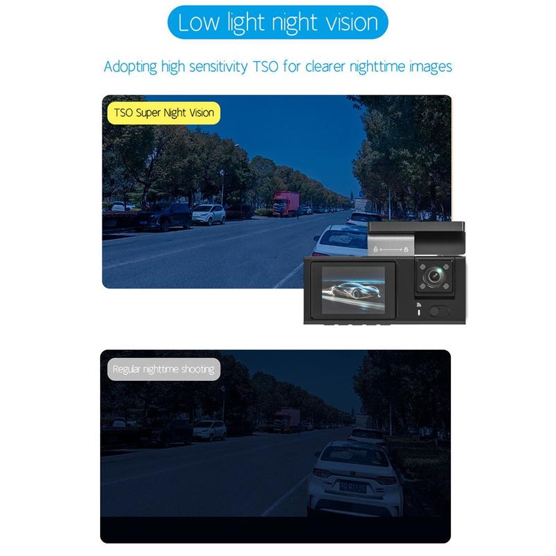 Y08 dashbordkameraet med tre objektiver gir full overvåking av kjøretøyet med tre HD-kameraer som fanger opp veien foran, interiøret i kupeen og utsikten bakover samtidig. Frontkameraet tar opp i skarp 4K-klarhet, mens 720P-objektivene innvendig og bak sørger for bred dekning for daglig kjøring, samkjøring, familiebiler og sikkerhet i parkerte biler.
