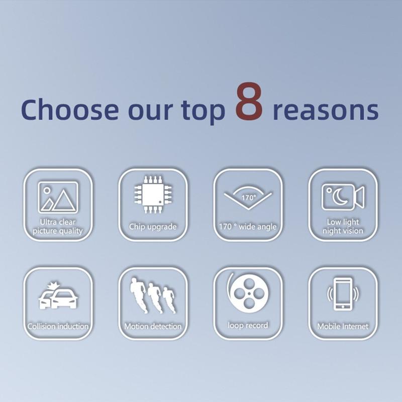 Avanserte sikkerhetsfunksjoner, inkludert en G-sensor for kollisjonsdeteksjon og bevegelsesdeteksjon for overvåking av parkerte biler, gir ekstra beskyttelse døgnet rundt. Flerspråklig støtte gjør Y08 tilgjengelig for brukere over hele verden.