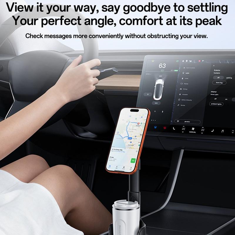 Det sterke magnetiske festesystemet bruker 16 N52-magneter for å holde telefonen sikkert på plass, selv på ujevne veier eller ved bråbremsing. Et 360° roterende kulehode lar deg justere telefonen til den ideelle visningsvinkelen for navigering, samtaler eller musikkontroll. Den fleksible koppholderbasen tilpasser seg ulike biltyper, mens det myke silikonfôret bidrar til å forhindre riper og absorberer vibrasjoner for tryggere kjøring.