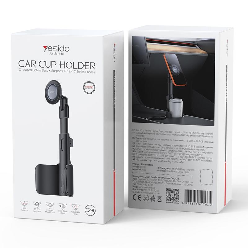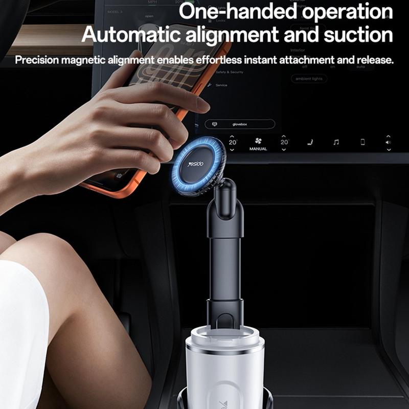 Yesido C230 har et smart design som gjør at du kan bruke koppholderen samtidig som telefonen holdes sikkert på plass. Med kraftige magneter, fleksibel rotasjon og enkel betjening med én hånd gir den en praktisk og sikker løsning for sjåfører som bruker telefonen til navigering og kommunikasjon.